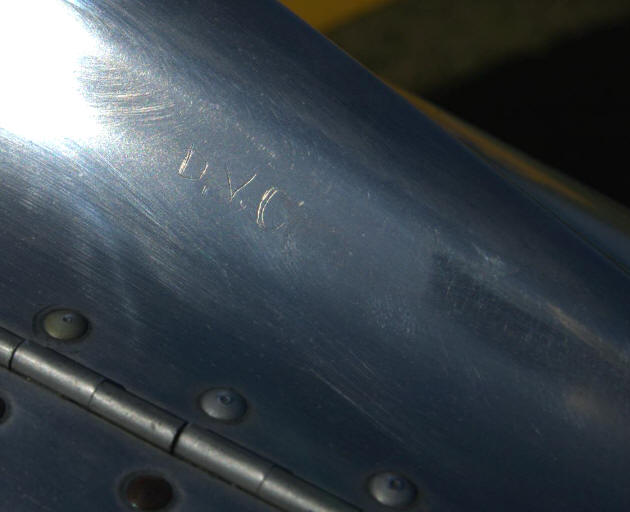 "D.V.C." hand carved into the plane's metal exterior,